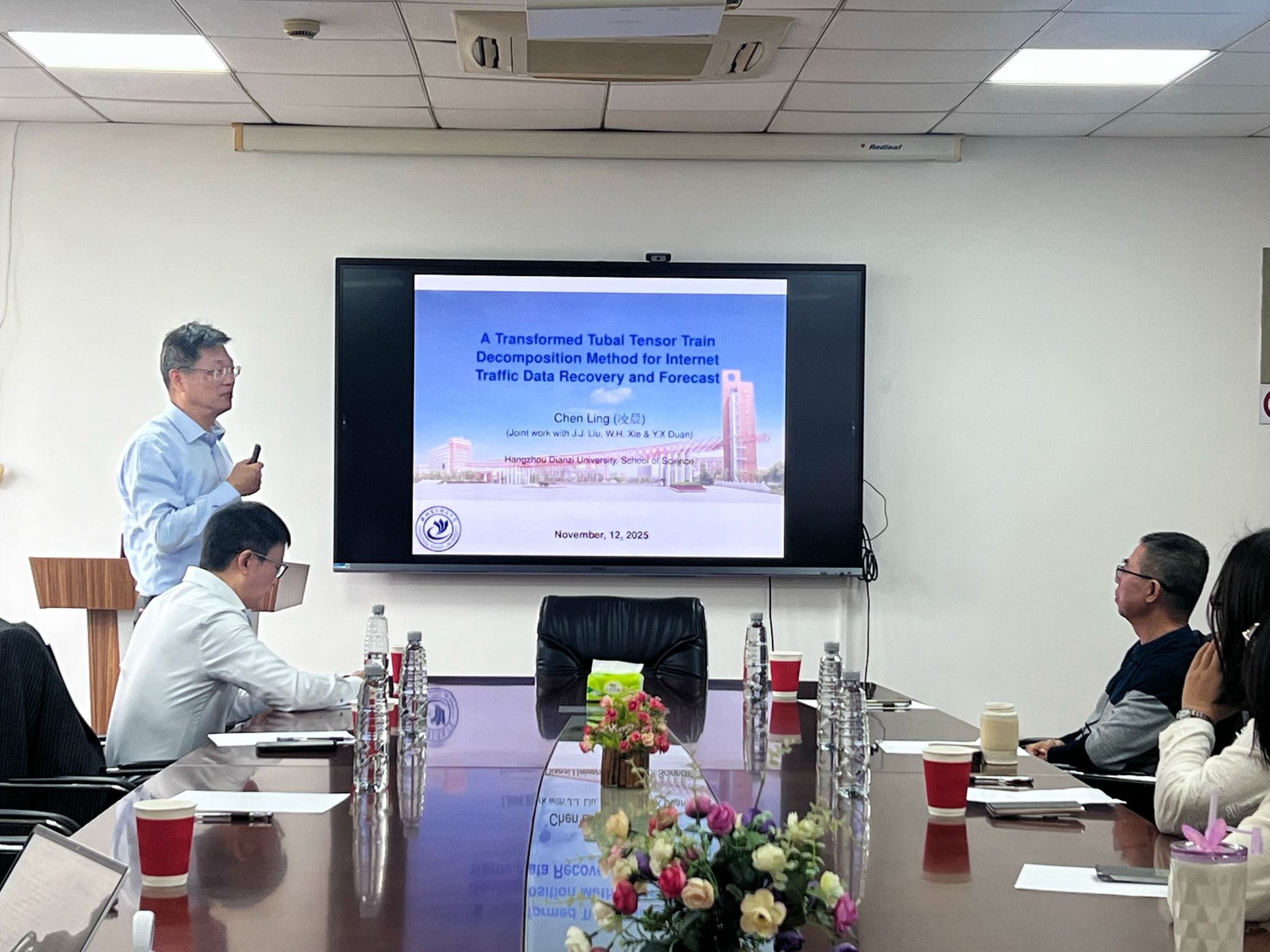 凌晨教授的报告《基于新型张量分解的互联网流量数据恢复和预测方法》聚焦行业痛点。网络流量数据不完整是制约互联网工程与管理领域发展的关键瓶颈,凌教授将流量数据的高维特性与内在的时间稳定性、周期性规律深度结合,创新引入“管状张量列分解”新型张量分解形式,据此构建了全新的数据恢复与预测优化模型。为高效求解这一复杂模型,设计了一套操作简便且收敛性有保证的算法,可使算法序列收敛至模型驻点。报告最后,凌教授通过多个真实世界数据集的测试对比,证实该方法相较现有主流技术具有显著性能优势,为互联网大数据分析提供了更精准可靠的解决方案。