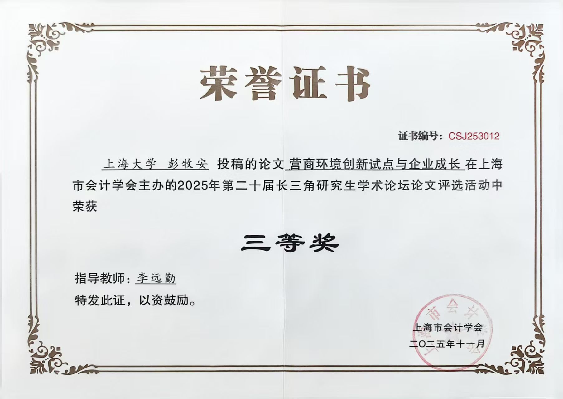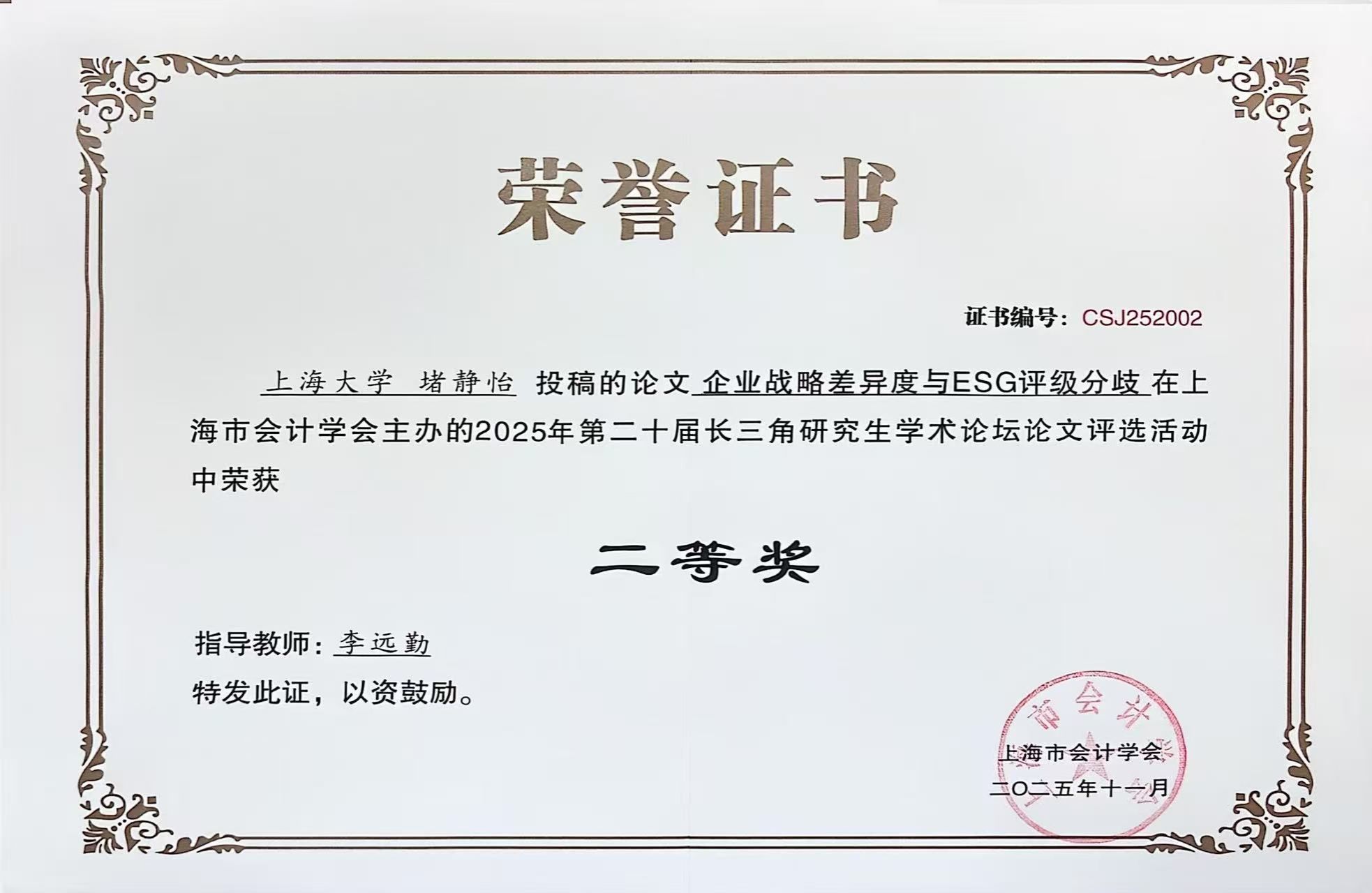 此次论坛共收到投稿123篇,选拔出一等奖12篇,二等奖21篇,三等奖32篇获奖论文,并邀请一等奖和二等奖论文作者进行汇报交流。在学院的支持以及会计系老师的带领下,管理学院研究生积极准备和提升论文质量,本次论坛获二等奖1篇,三等奖1篇,并有1位老师获得“优秀指导教师奖”。