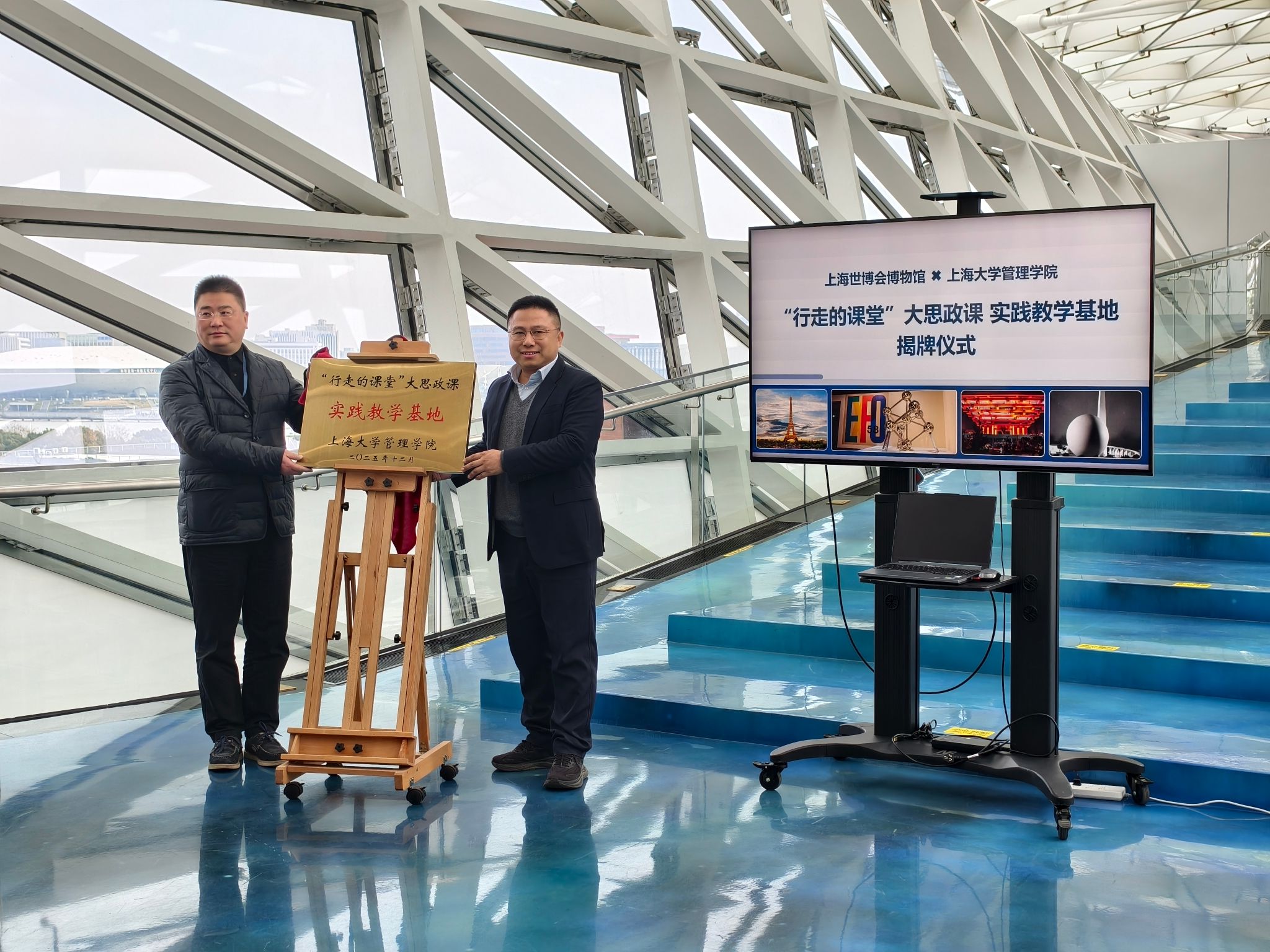 活动伊始,管理学院党委副书记、副院长马亮与世博会博物馆副馆长周继忠共同为“行走的课堂”大思政课实践教学基地揭牌,标志着管理学院在拓展大思政教育实践平台、融合文博资源与高等教育方面迈出了新的步伐。马亮老师在揭牌仪式上表示,将世博会博物馆这样承载着人类文明交流互鉴、科技创新与未来愿景的宏大叙事平台作为“大思政课”实践教学基地,旨在让同学们,特别是来自各民族的同学,在沉浸式体验中感悟国家发展成就、世界文明多样性与共同追求,铸牢中华民族共同体意识,培育全球视野与家国情怀。