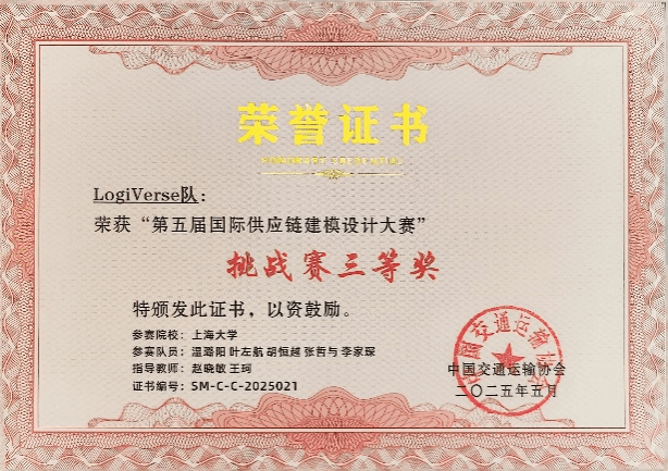 近年来,物流管理专业深入践行“以赛促学、以研促用”的育人理念,积极引导学生参与学科竞赛与科研实践。2025年,在全国大学生物流设计大赛中,仲维亚老师指导学生认真备赛,聚焦企业真实物流场景,深入分析、反复打磨方案,有效提升了学生的理论分析与实践应用能力。同年度,在第五届国际供应链建模设计大赛中,赵晓敏老师和王珂老师指导两支本科生团队(共10名学生)针对赛题案例进行供应链建模优化,凭借扎实的专业基础和严谨的解决方案,分别荣获二等奖和三等奖——这也是物流管理专业连续第三年在该项赛事中斩获佳绩。